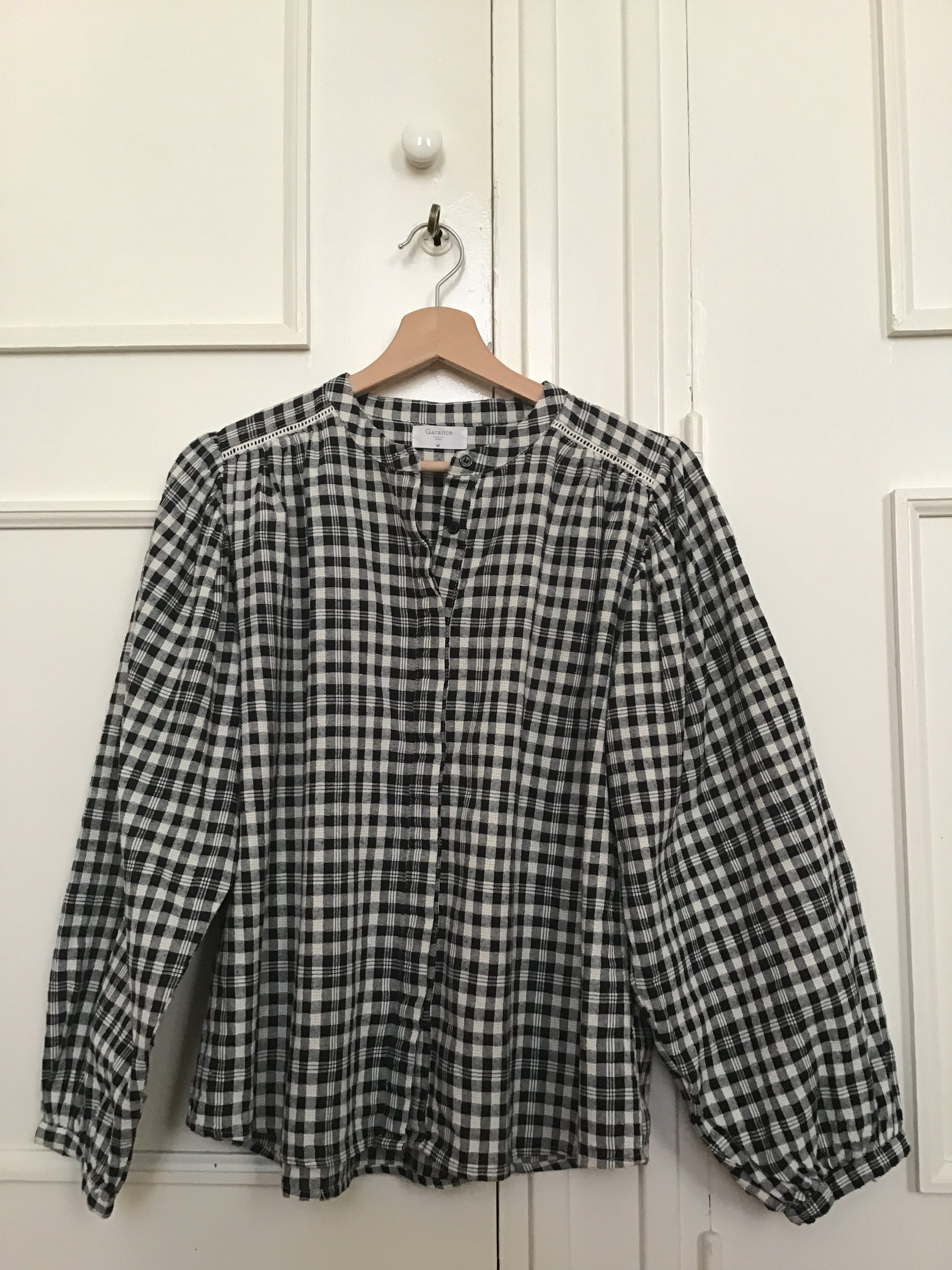 Charmante blouse à carreaux noir et blanc très tendance pour hiver 2026